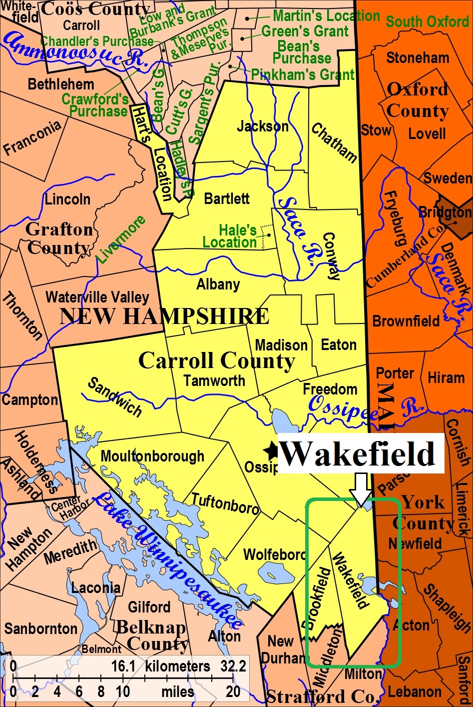 | W01-064 Young, off Old Farm Road, USGS Ossipee Quadrangle, E33437, N483237, Zone 19 (43° 37' 40"N, 71° 3' 11"W), Source: Bill Twombley 1983 MAP |
